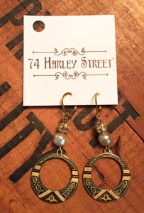 Vintage black and gold etched hoops with pearls and sparklies