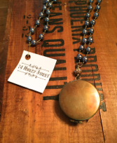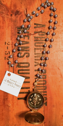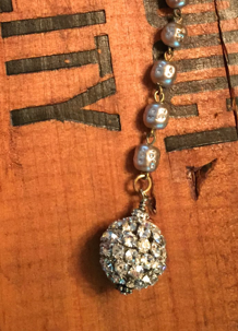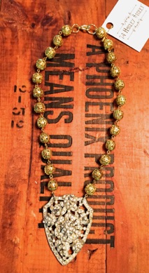 Fun brass and turquoise chip pendant on turquoise glass chain