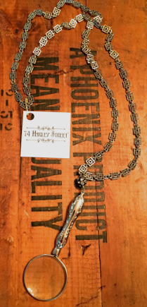 Vintage brass filagree chain with vintage rhinestone dress clip