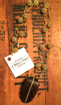 Vintage wood and brass leaf dress clip on vintage gold chain