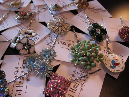 Hair clips are created from vintage clip-on and screw-back