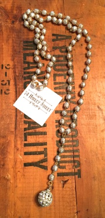 Vintage cinnabar pendant with dangling tassel on glass pearl chain