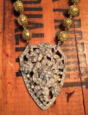 Vintage brass filagree chain with vintage rhinestone dress clip